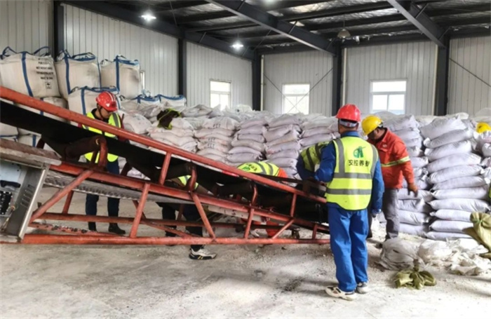 淮南處養(yǎng)護人員在裝載融雪劑